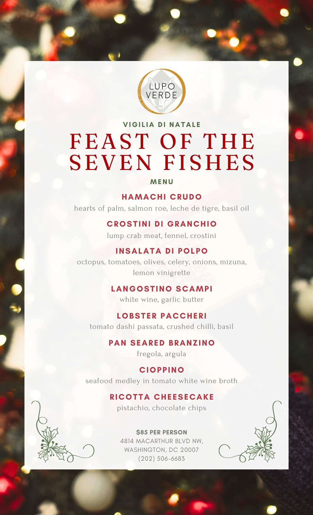 It's what Italians do when they say they're fasting."More precisely, the Feast is a meal served in Italian households on La Vigilia (Christmas Eve). In many parts of Italy, the night is traditionally a partial fast, during which no meat should be served. But in true Italian style, this proscription has morphed into something very unfastlike indeed: course after course of luxurious seafood dishes.... Regardless of the religious symbolism, for most people the main point of the meal is to gather family and friends and enjoy delicious food. " -epicurious.com