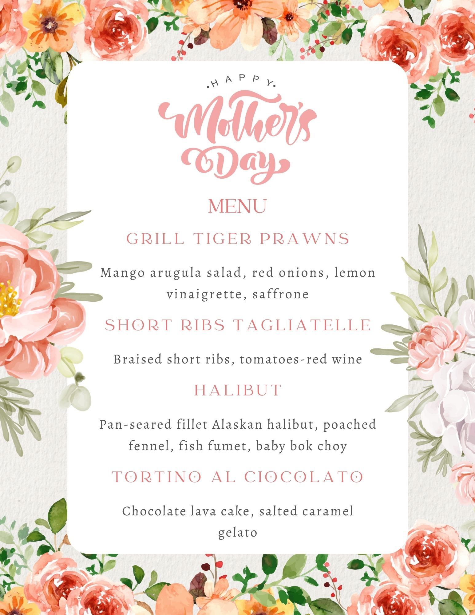 Mother's Day dinner, featuring a mouth-watering three-course meal and dessert for just $65 per person.