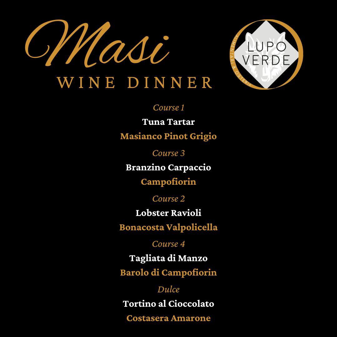 Don't miss out on this unforgettable culinary experience! Reserve your spot now and get ready to savor the flavors of Italy with Masi Wine Dinner @ Lupo Osteria.